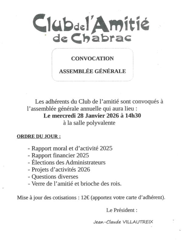 Assemblée générale du Club de l’Amitié de Chabrac .