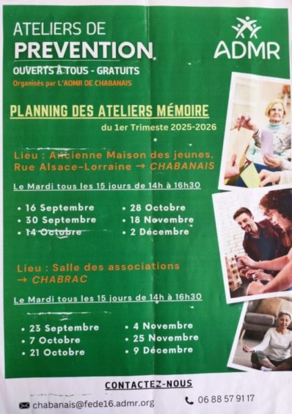 Ateliers de prévention ! Planning des ateliers mémoire.