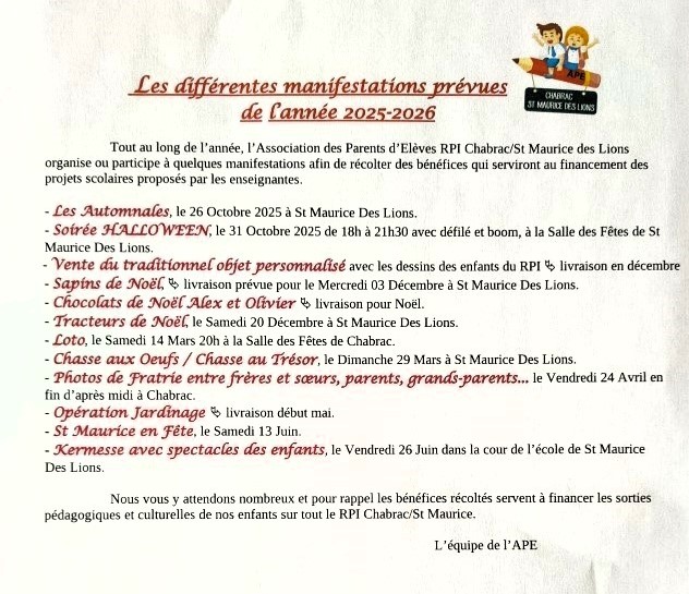 Calendrier des manifestations prévues 2025-2026.